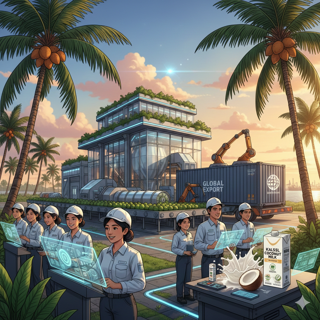 Proyeknya? Mereka mau bangun pabrik gede di Barito Kuala (Batola) buat ngolah kelapa jadi Coconut Milk (Susu Kelapa) siap ekspor ke pasar global! 🚀
